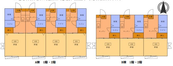 - A:1K×8戸 B:1K×6戸